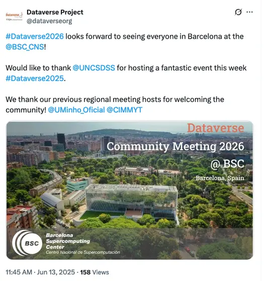 See you in Barcelona in 2026! I just updated https://dataverse.org/events to link to https://x.com/dataverseorg/status/1933551311485620468