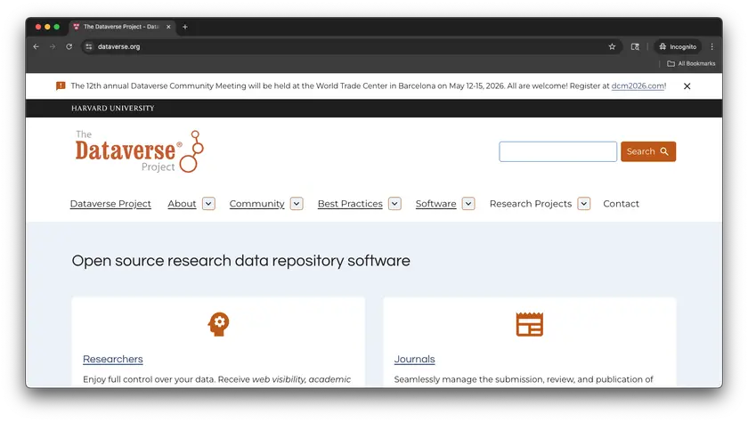 "The 12th annual Dataverse Community Meeting will be held at the World Trade Center in Barcelona on May 12-15, 2026. All are welcome! Register at dcm2026.com!"