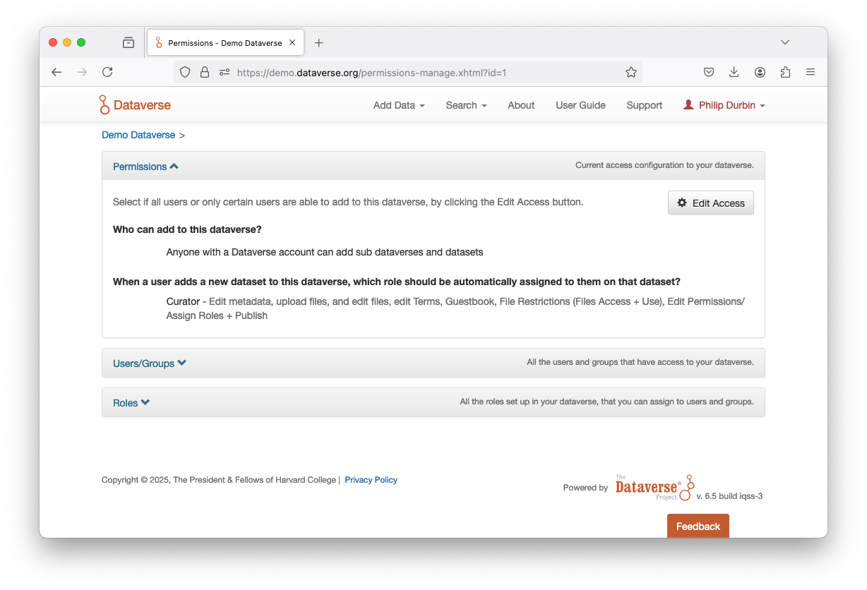 Huh, it says "Anyone with a Dataverse account can add sub dataverses and datasets".