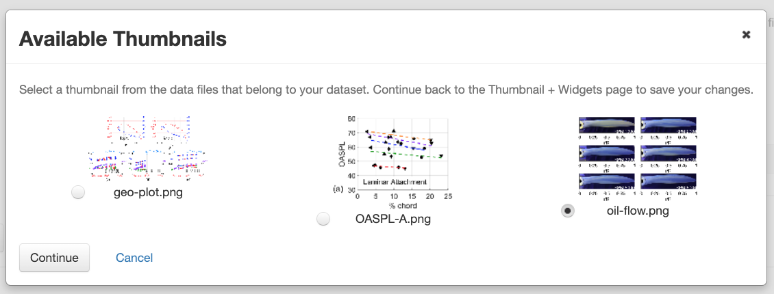 Maybe it could work like the thumbnail image for a dataset. We let you choose from available images: