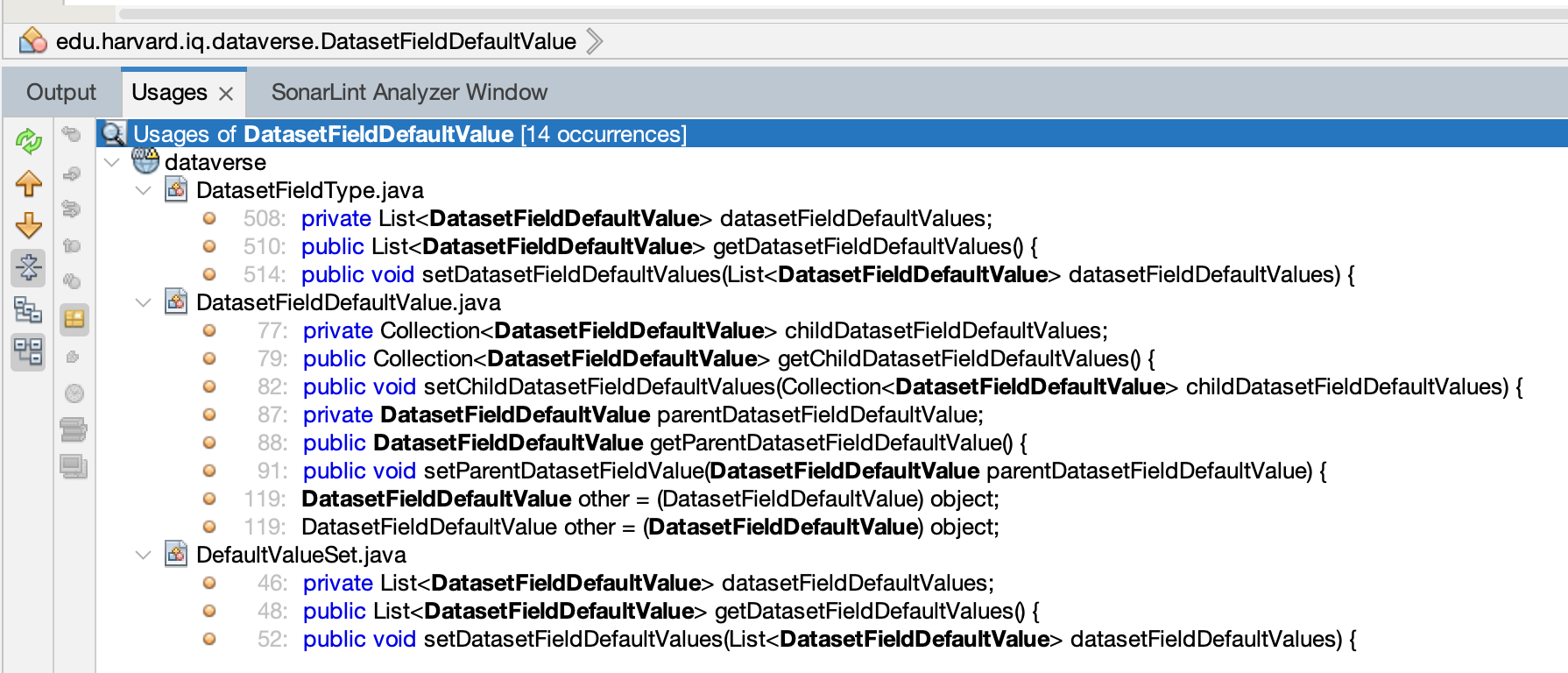 I do find it interesting that the project still compiles if I delete DatasetFieldDefaultValue and DefaultValueSet and only these lines: