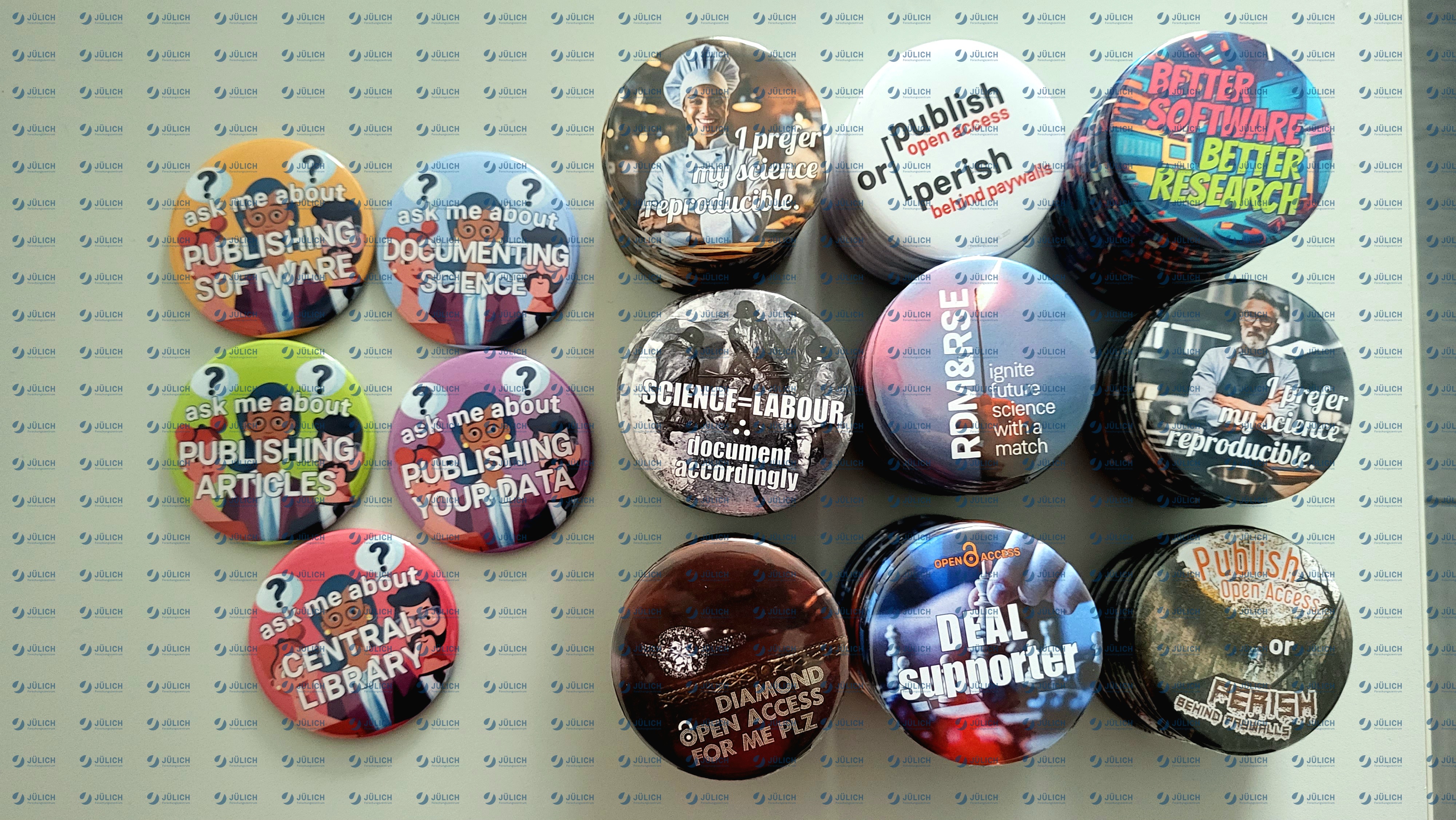 Next week is a lot of things. At FZJ, we are having "Open Science Week" instead of just "Open Access" or "Intl. Data". We prepared some swag to hand out to folks. It's fridge button magnets (and we will wear the "ask me about" badges to be more approachable)