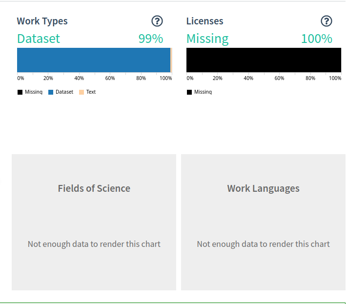 You can see the Datacite metadata related to languages, licenses and subjects in the Harvard Dataverse or other Dataverse based repositories: