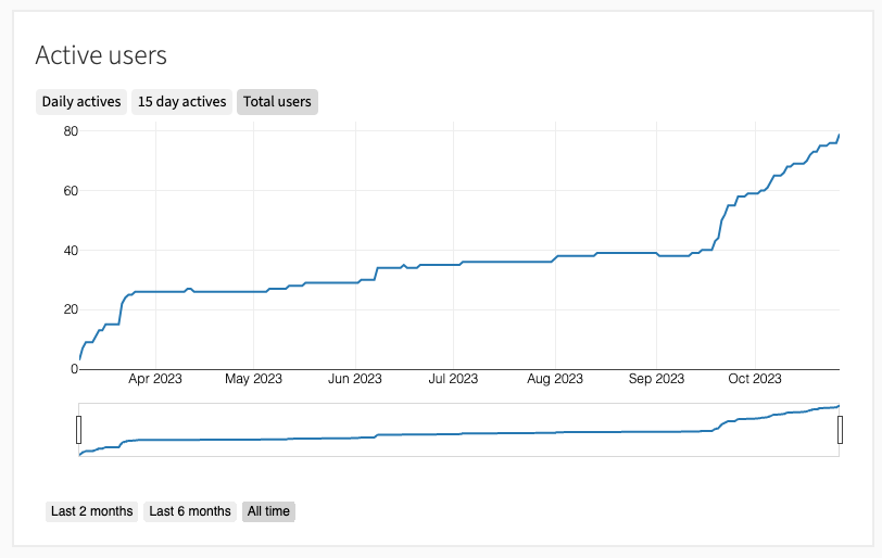 The count of total users is definitely up! From https://dataverse.zulipchat.com/stats