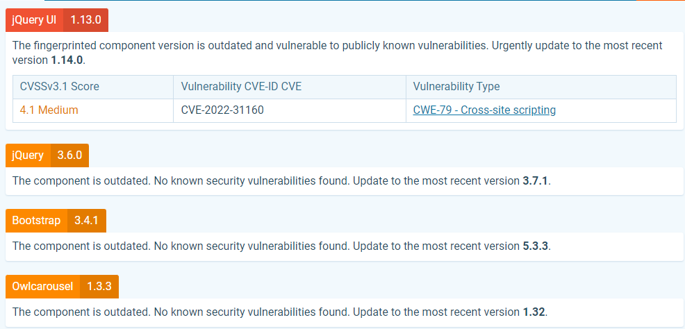 Hi all. I would like to propose an issue that I found running a website security test to my Dataverse. It is related with components jquery ui, bootstrap, jquery and owlcarousel.