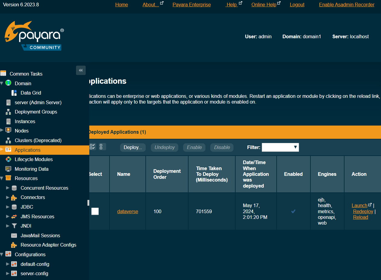 So i took yours [docker-compose-dev.yml, renamed it as compose.yml and run $docker compose up. Does not to seem to work properly though. It deploys, I see it in payara console admin, but localhost:8080 still shows only payara page. Or maybe I am not doing things correctly?