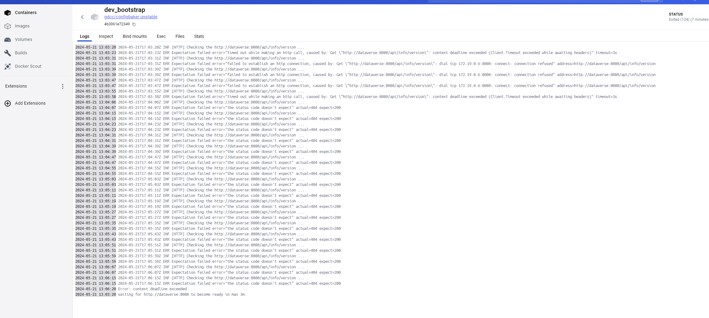 2024-05-21 13:22:47 2024-05-21T17:22:47Z INF [HTTP] Checking the http://dataverse:8080/api/info/version ...