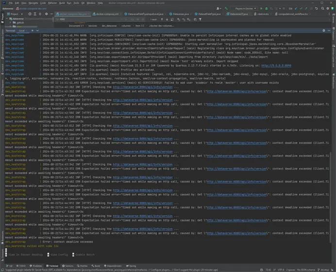 I'm having trouble starting the platform on my main machine (Windows). Until last week, everything was working fine on my local branch, although I hadn't updated it in quite some time. I had to switch branches to run some tests, so I took the opportunity to update the repository. Since then, I haven't been able to get the platform running on any branch, even when trying to revert to a previous commit. A teammate has been helping me, but we haven't been able to pinpoint the issue.