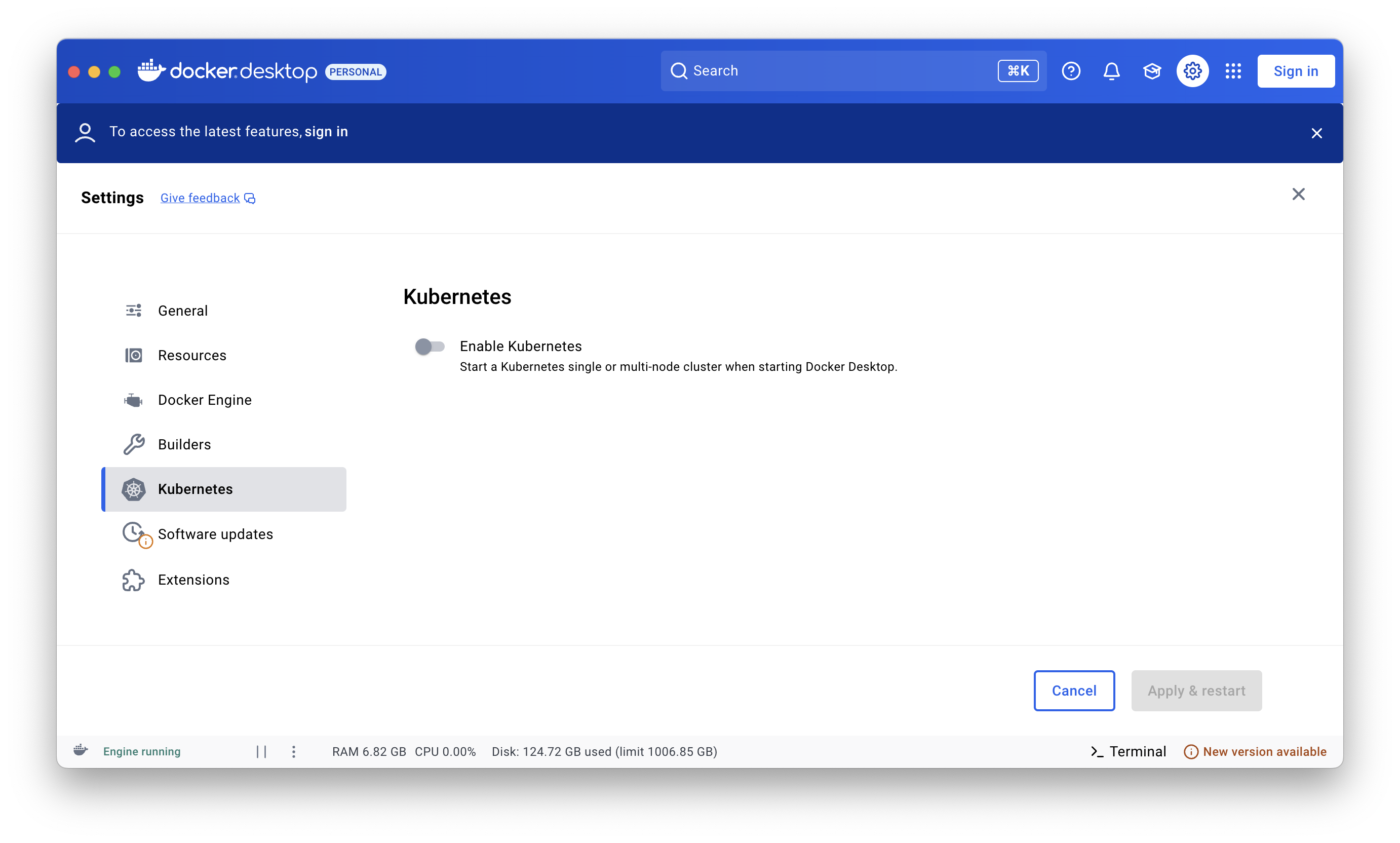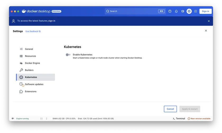 ... be sure to enable Kubernetes!