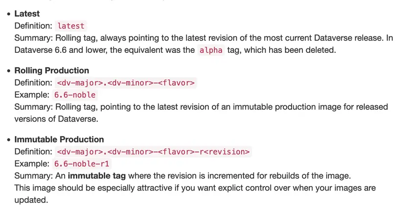 Because #11477 was merged (just yesterday!) we can also see the tags that @Oliver Bertuch is describing on the preview version of the guides: http://preview.guides.gdcc.io/en/develop/container/app-image.html#supported-image-tags