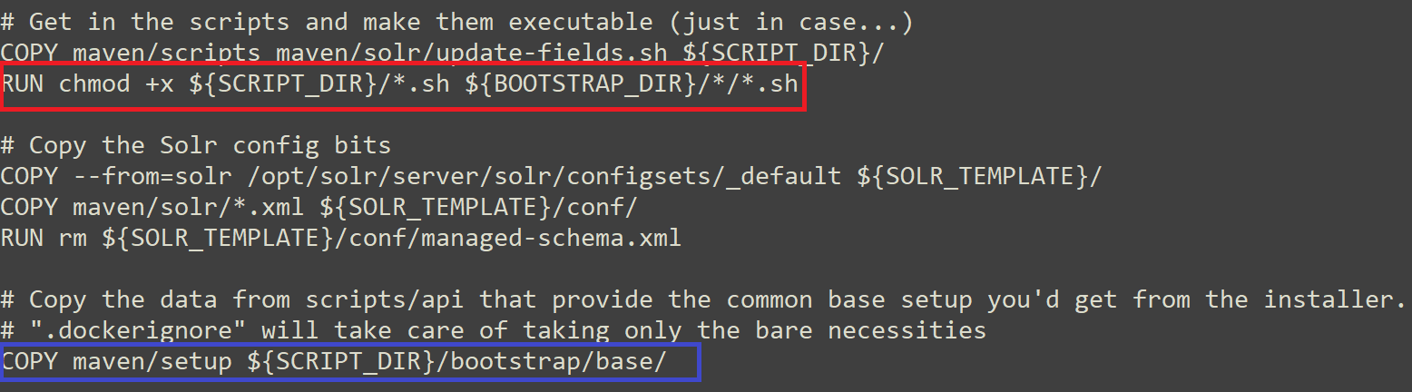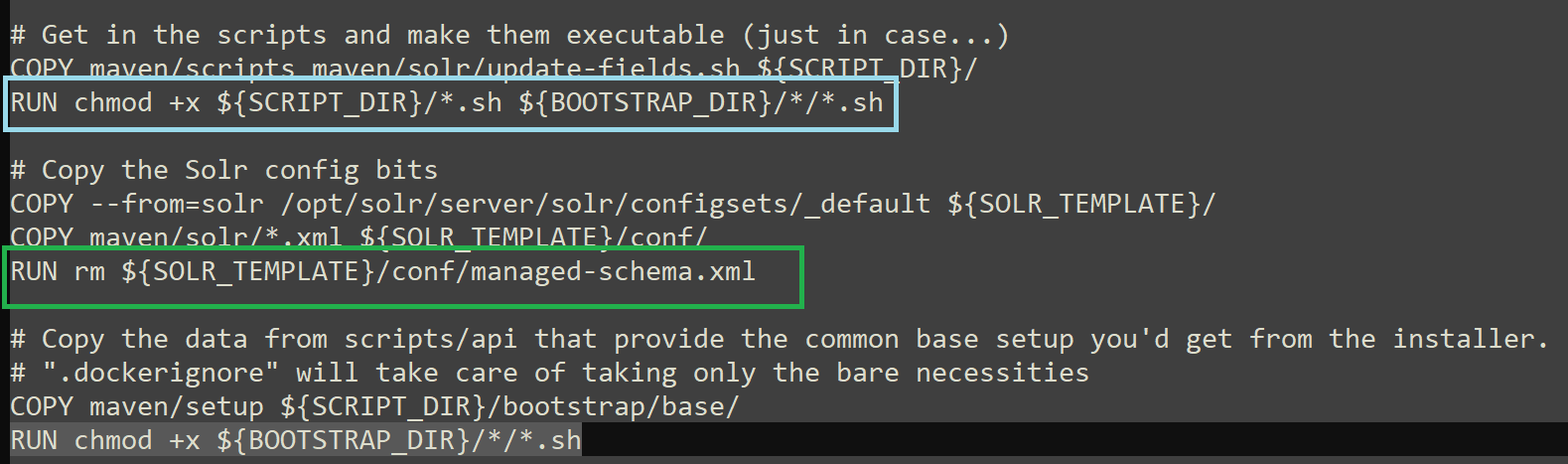 Please note that after the copy, there is a run statement that should reveal the chmod +x I'm running on purpose there.
