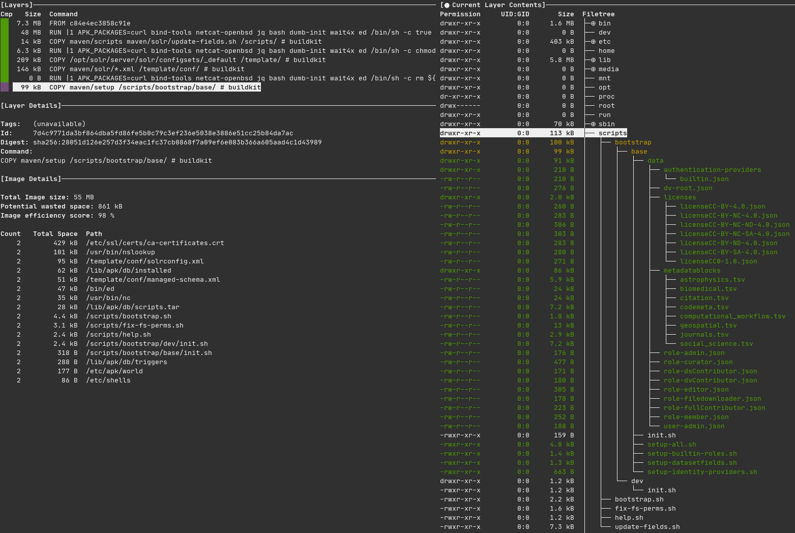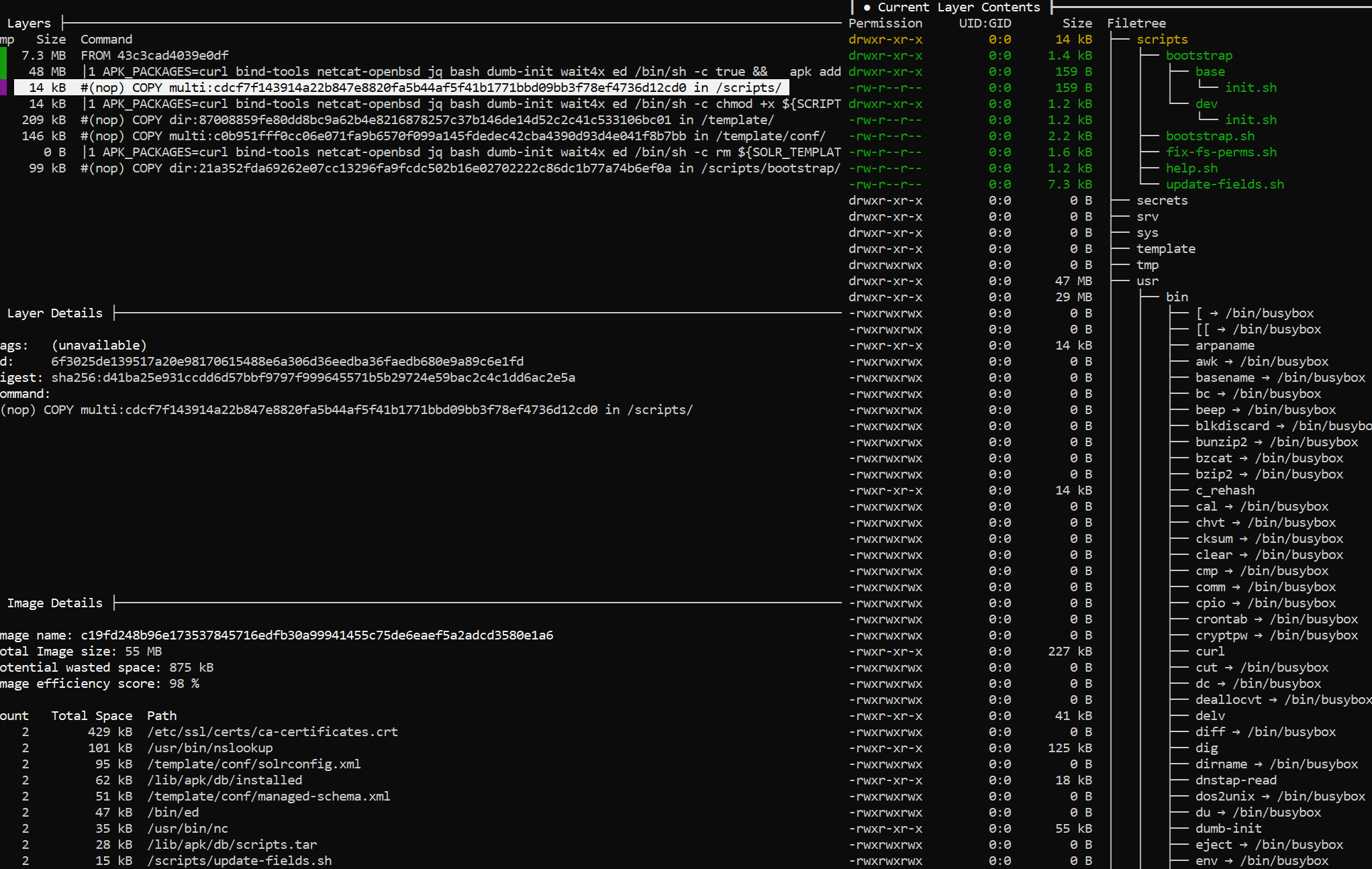 Let's see, I am not sure I am looking at the right thing, just downloaded dive for the first time and checked the gdcc/configbaker image and this is the content: