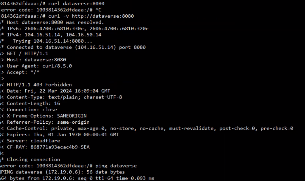 alpha tagged image (as we told her in the demo), which dates before Christmas and does not have the backport.gdcc/configbaker:unstable, which contains the fix indeed, BUT there is a gotcha here: the resolution used the search parameter we get from resolv.conf and thus made curl go for dataverse.asu.edu and an external IP, not the internal one.Here's a screenshot of what happens at 2)