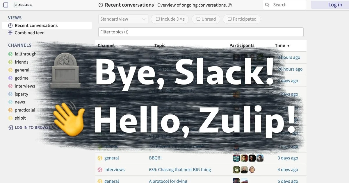 A nice post about the switch: https://changelog.com/posts/our-slack-is-dead-long-live-zulip