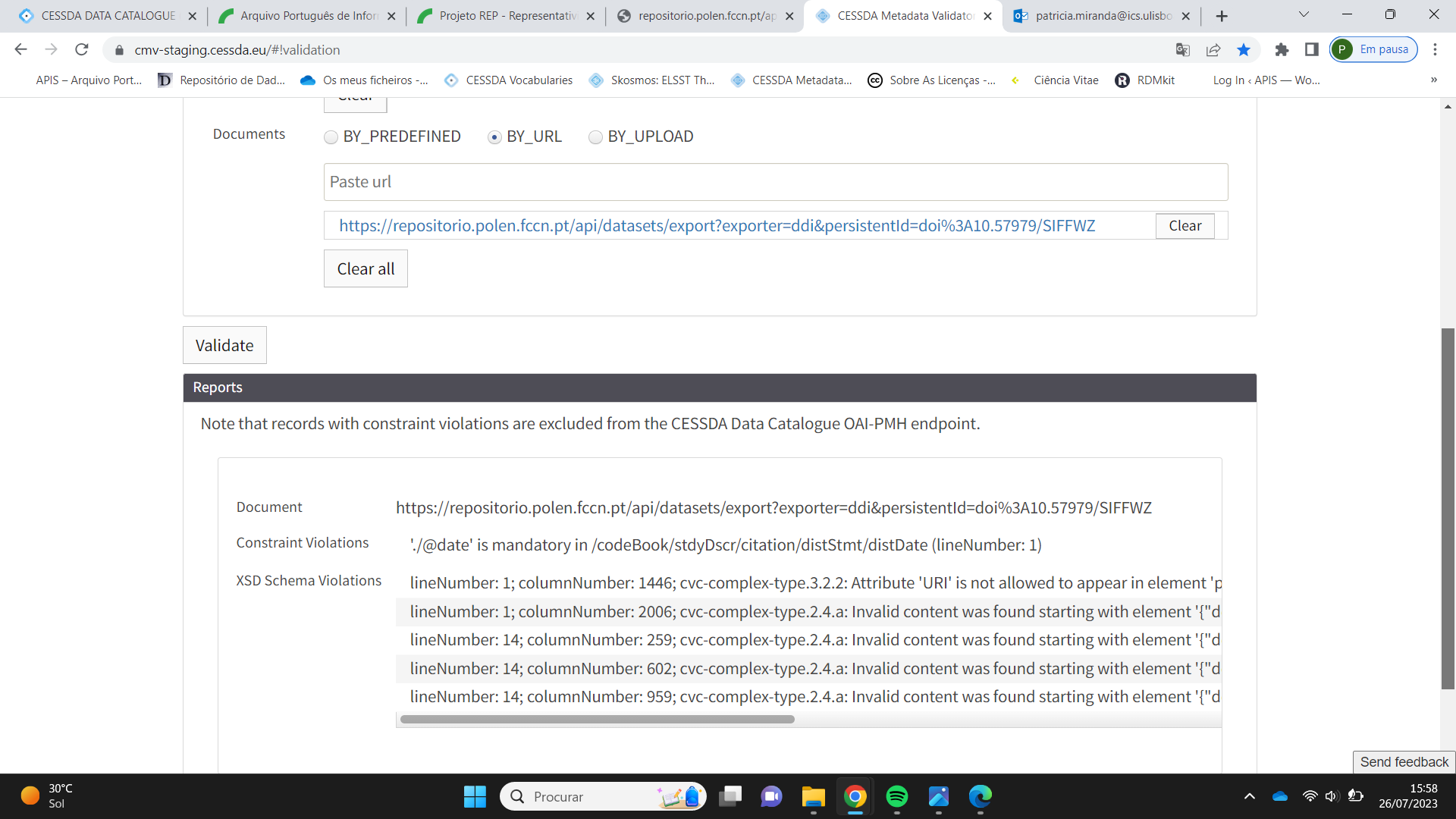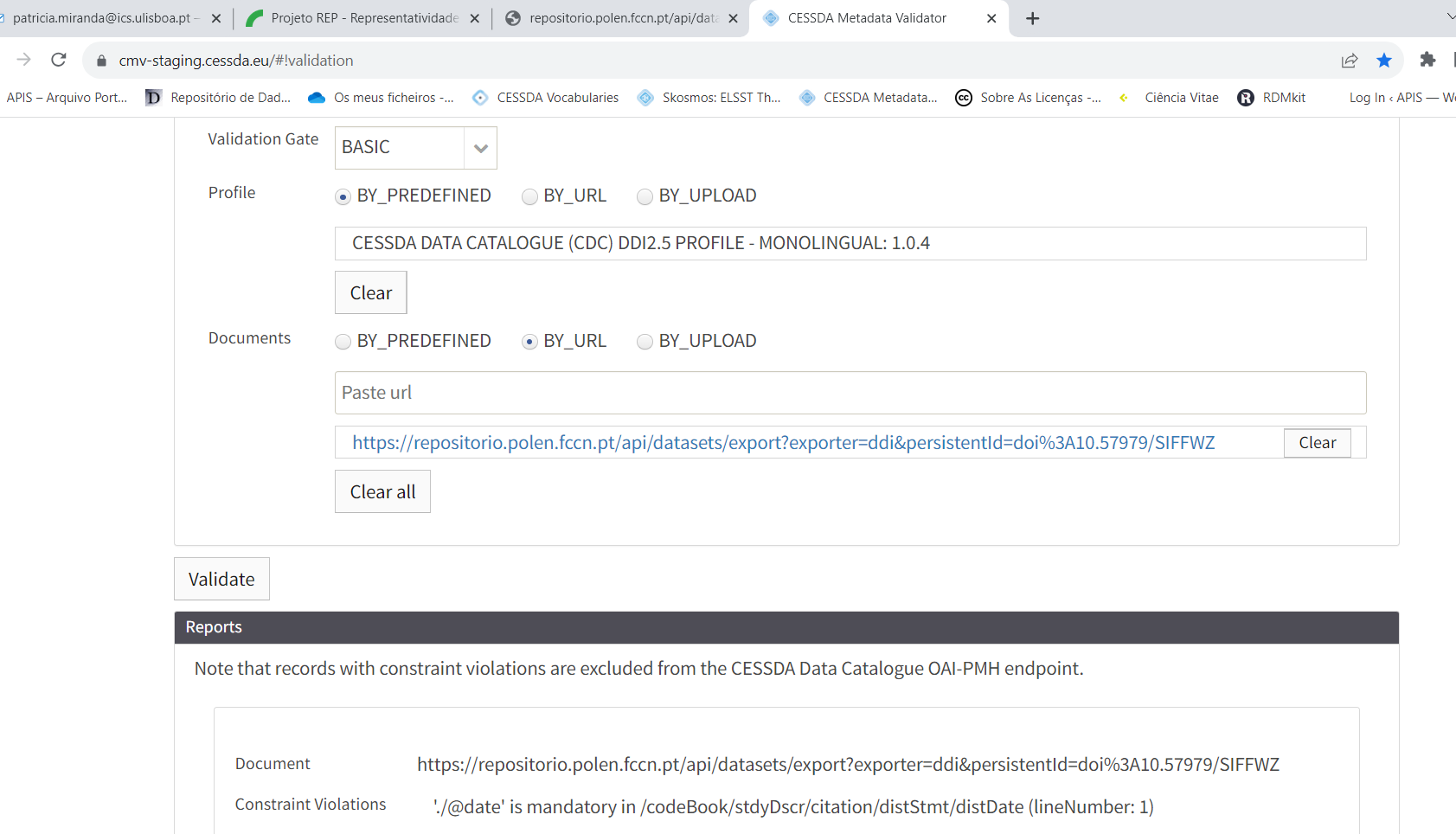 P.S. It's not shown in your screenshot, but what validation profile are you using? We've been testing under "CESSDA DATA CATALOGUE (CDC) DDI2.5 PROFILE - MONOLINGUAL: 1.0.4".
