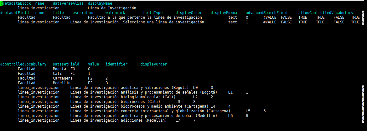 curl http://localhost:8080/api/admin/datasetfield/load -H "Content-type: text/tab-separated-values" -X POST --upload-file lineaInv.tvs