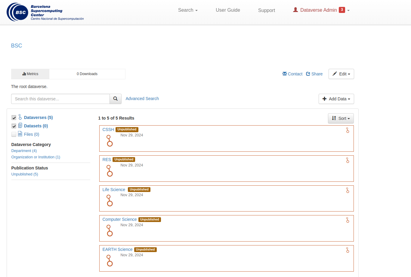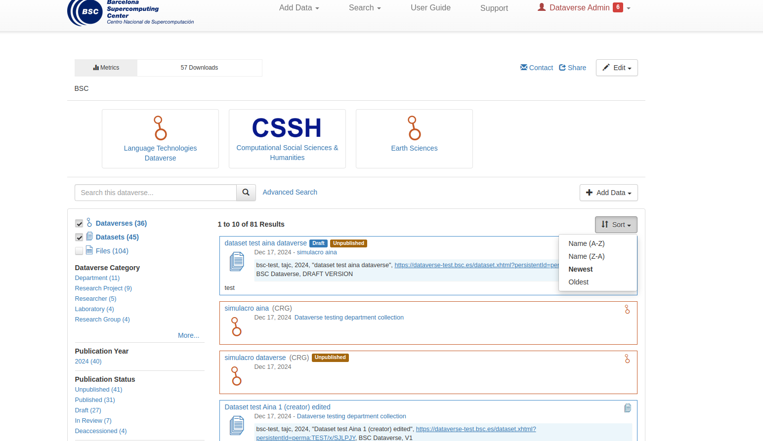 We can access the dataset page directly at https://dataverse-test.bsc.es/dataset.xhtml?persistentId=perma:TEST/x/GEGNYK