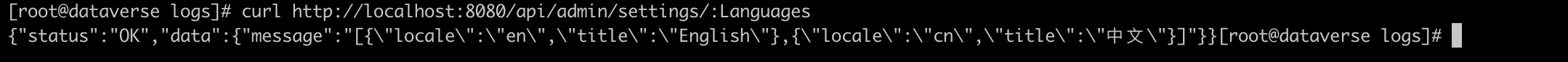here is the output of "curl http://localhost:8080/api/admin/settings/:Languages"