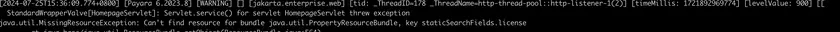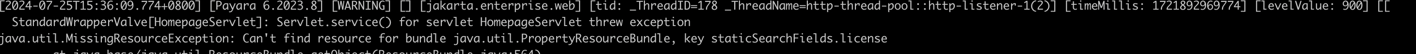 java.util.MissingResourceException: Can't find resource for bundle java.util.PropertyResourceBundle, key staticSearchFields.license