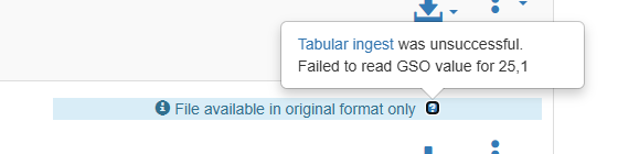 On our test server there is a STATA file that failed to convert to tab when being ingested. The information on the page shows this: