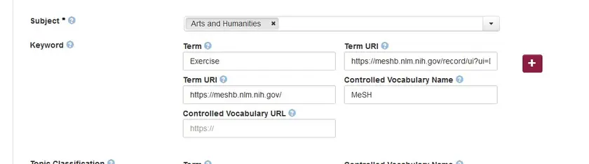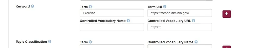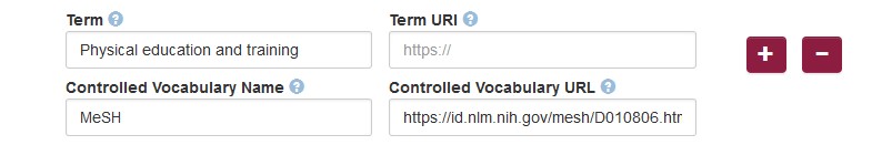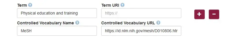 and keywordTermURI is the URL for the term (Physical education and training -> http://id.nlm.nih.gov/mesh/D010806)