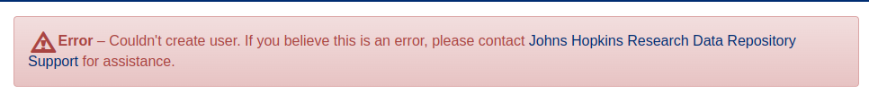 "Error โ Couldn't create user. If you believe this is an error, please contact...."