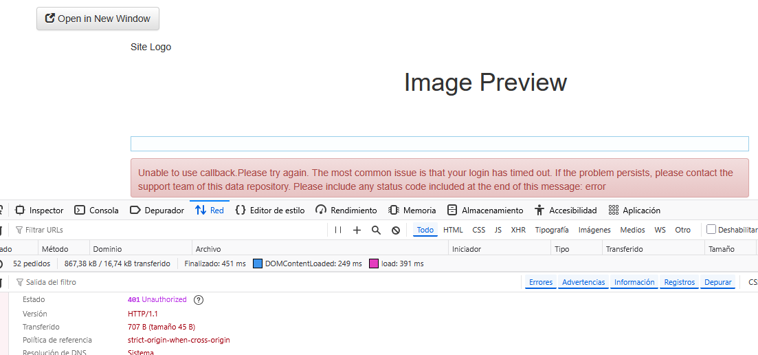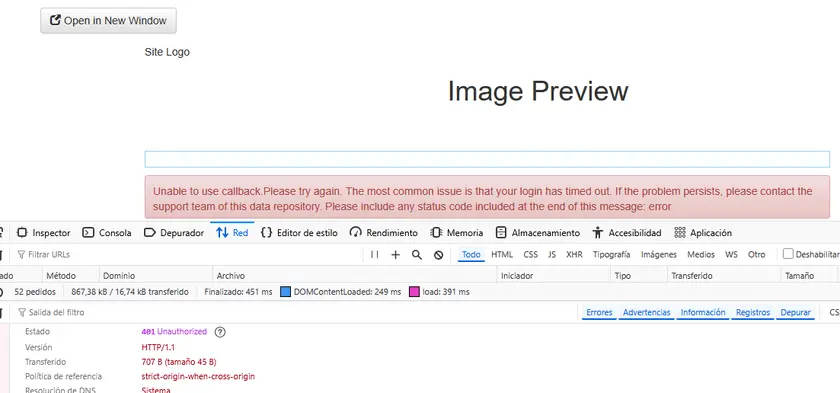 After upgrading to Dataverse 6.2 and Dataverse Previewers 1.5, image previews are no longer displayed for datasets in draft version. Instead, the image preview generates an error.