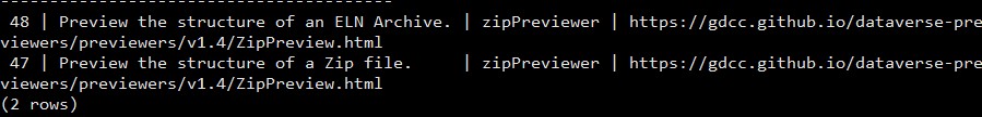 I noticed in the db .. the URL listed for both ZIP and ELN ZIP previewers is the same .. but they are in a different order .. in QA the db looks like this: