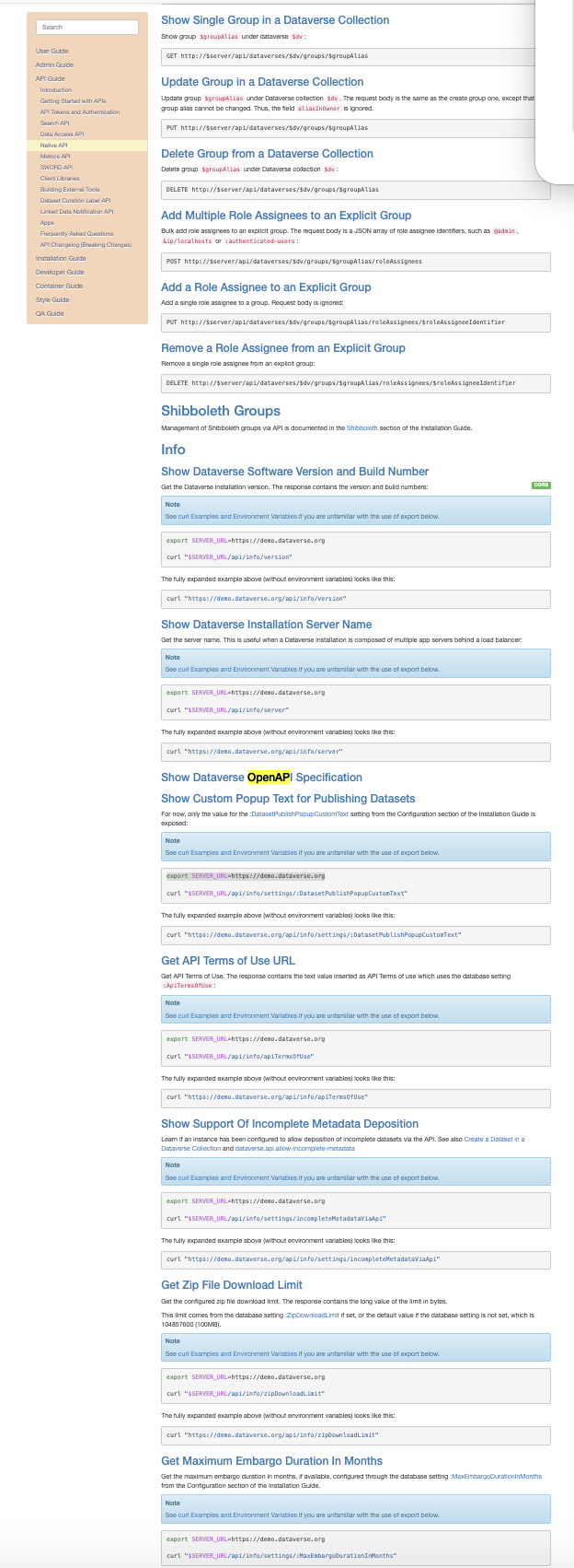 https://guides.dataverse.org/en/latest/api/intro.html#lists-of-dataverse-apis
