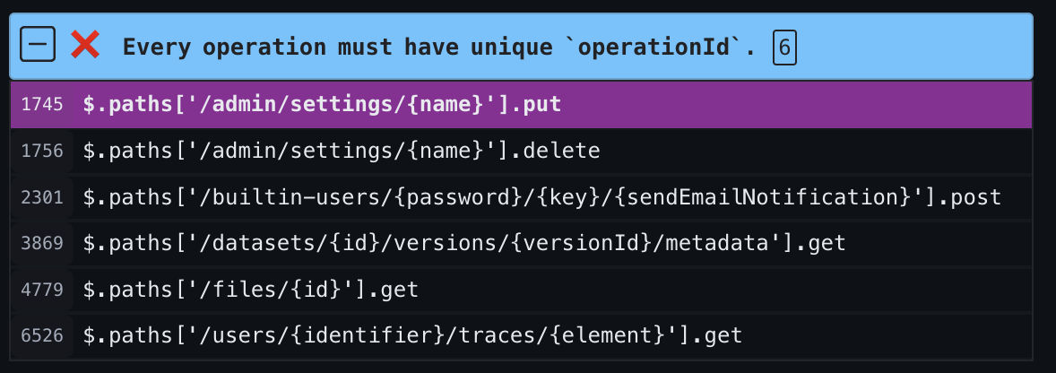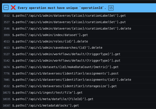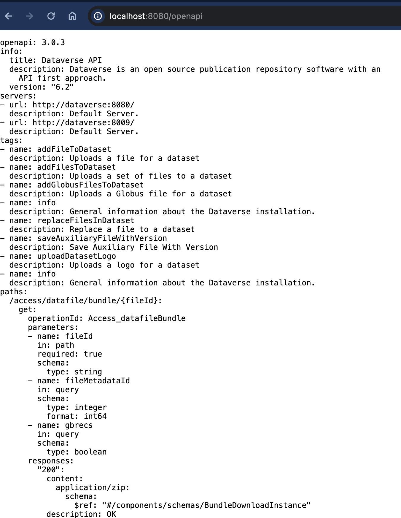 @Philip Durbin sounds great! The new output is definitely helping the first stage a lot already. All endpoints are well-defined and we should be able to utilize it for code generation. We may not have the benefit of schemes, but for our testing, it is sufficient. I will give it a test next week and see how it performs.