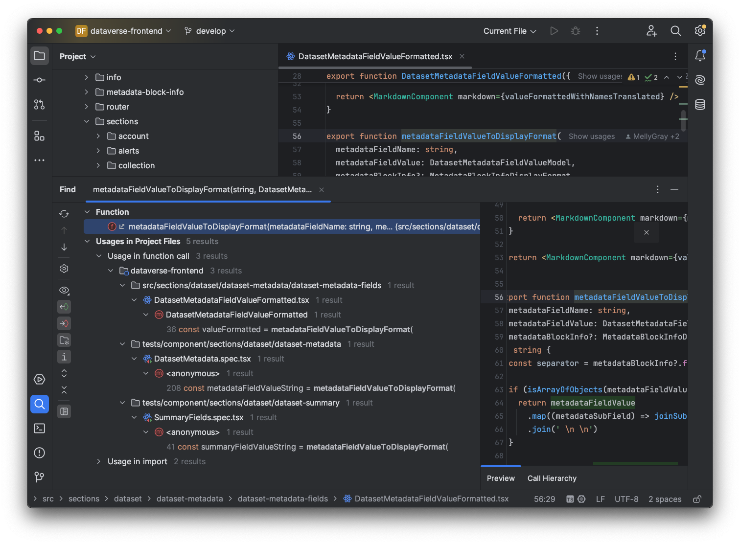 "detect" is an interface by the way. cp.detect is implemented in each of the content providers. Maybe that's why it doesn't work. In Netbeans, with Java anyway, I can do something like "show implementation" and I get a dropdown to choose which implementation (which content provider) I want to go to.