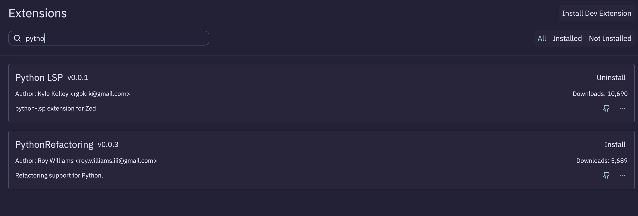 https://github.com/rgbkrk/python-lsp-zed-extension
