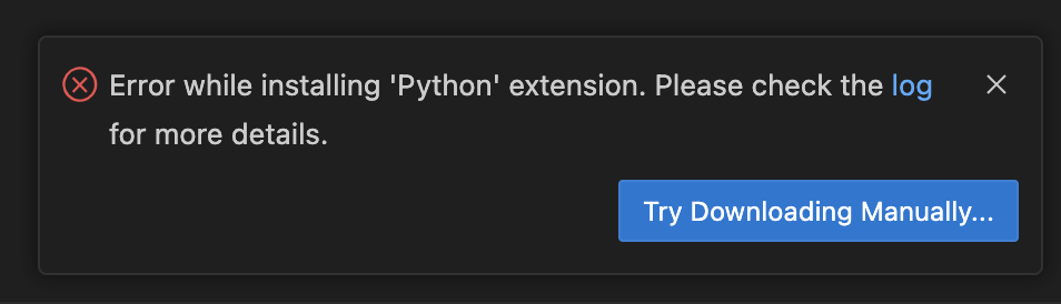 2024-12-11 10:31:09.830 [error] Unknown: Unknown error while installing extension ms-python.python :sob:
