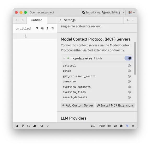 Playing around with Zed and the Dataverse MCP server! https://github.com/gdcc/mcp-dataverse/pull/5