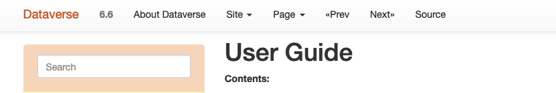 Looks great. If you click on Dataverse at the top left there, you then go to the 'home' page of the guides, right? I feel like maybe a way to get back to the Dataverse project page is missing though. Maybe a "more about Dataverse" in the navbar or an "About Dataverse" next to "Source"